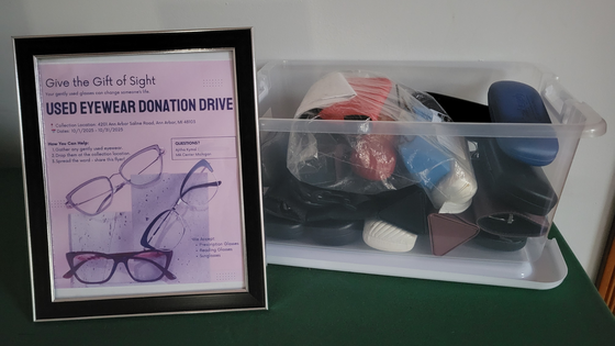 A soft, calm purple flyer titled “Give the Gift of Sight” soon went up at the center’s Ann Arbor location on Ann Arbor Saline Road, inviting everyone to donate gently used glasses. Within weeks, the response was overwhelming.