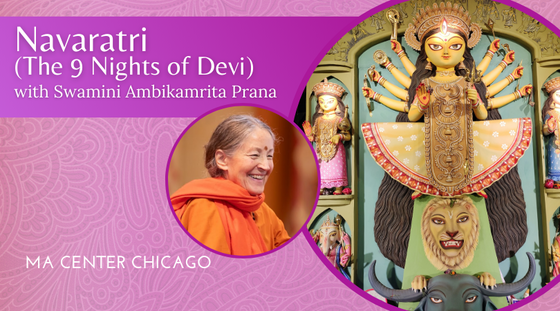 Navaratri, or the nine nights of Devi, will be observed at MA Center Chicago Monday, Sept. 22nd through Wednesday, Oct. 1st with Swamini Ambikamrita Prana. The word Navaratri means 'nine nights' in Sanskrit. Navaratri is a time of sadhana, of conquering our inner negativities to gain greater will power and self-control, of awakening the right knowledge from within.