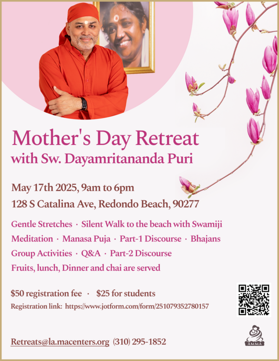 MOTHERS DAY RETREAT WITH SWAMI DAYAMRITANANDA PURI MAY 17TH