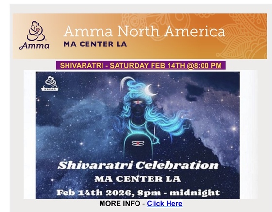 The night of February 14th, 2026, was one to remember at MA Center LA in Redondo Beach, as devotees gathered to celebrate Mahashivaratri in a spirit of love, devotion, and deep spiritual practice. The hall was beautifully decorated, with a divine altar radiating serenity and grace,