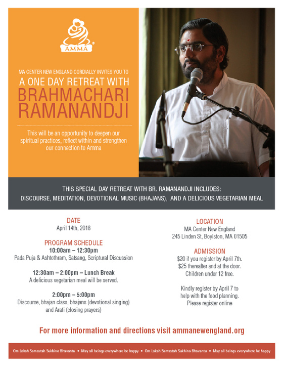 M.A. Center of New England welcomes everyone to spend a whole day in spiritual retreat day at the Ashram with Br. Ramanandji.