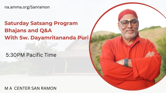This Saturday, join us for a special satsang program led by Swami Dayamritananda Puri. The program will include a special Q&A with Swamiji, followed by bhajans and Arati with Swamiji.