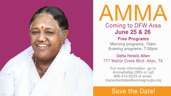 Our beloved Amma is providing us in the South Central area the precious opportunity to serve her as a host city during the upcoming Dallas Tour stop. Amma will be holding program in the Dallas metropolitan area on June 25 & 26.