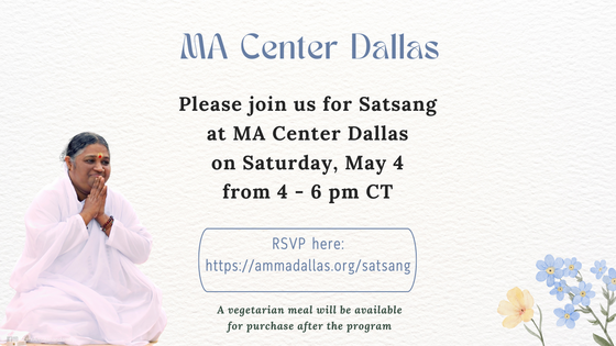 Please join us for Satsang at MA Center Dallas on Saturday, May 4th from 4 PM onwards.