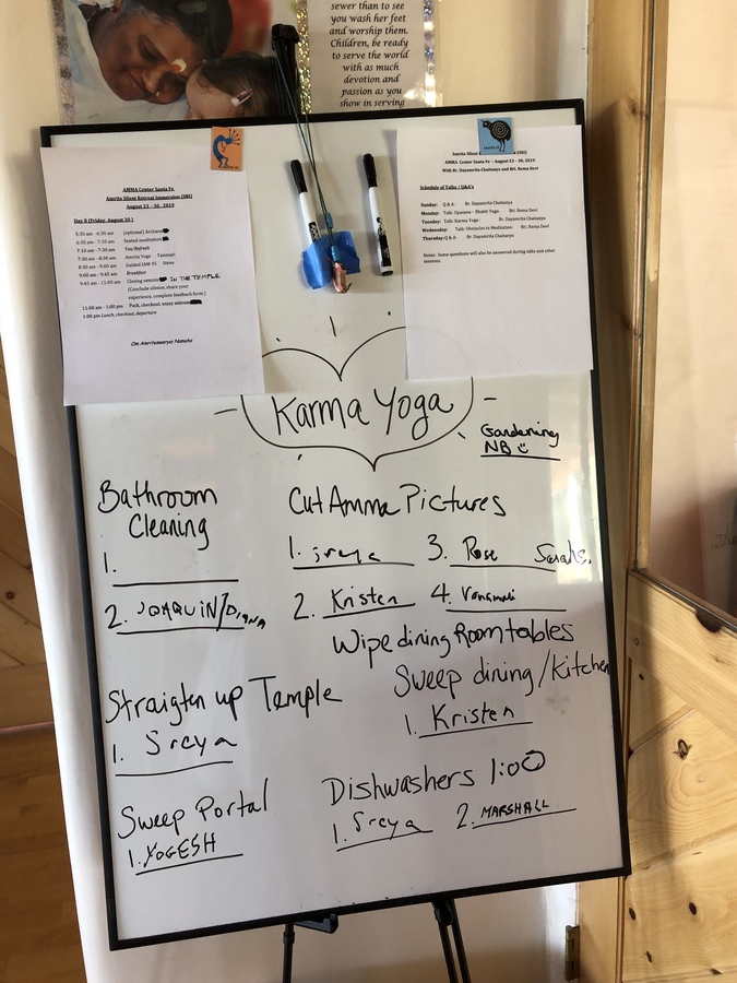 The Amma Center of New Mexico, Santa Fe hosted a national Silent lmmersion Retreat from August 23 till August 30. Amma's North American-based disciples, Br. Dayamrita Chaitanya and Bri. Rema Devi led the retreat. Participants could choose between a 3 1/2 day option and a 7 day option. Over 50 people participated in the daily routine, which included morning archana, IAM-35 meditation, Amrita Yoga, spiritual discourses and discussions and evening bhajans. They also enjoyed wholesome vegetarian meals and quiet mountain walks. Many said they were moved by the depth and profundity of their experiences and felt revitalized, with a renewed respect for all that Amma had given them.