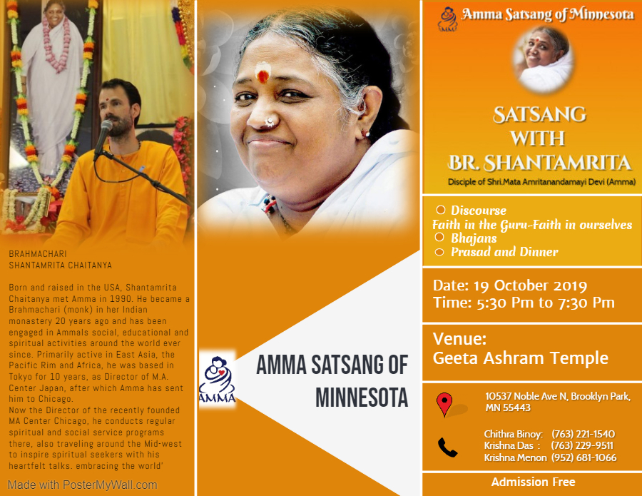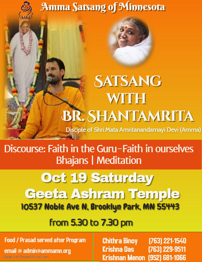 Details of satsang programs conducted by Amma's monastic disciples in various cities in the Americas.