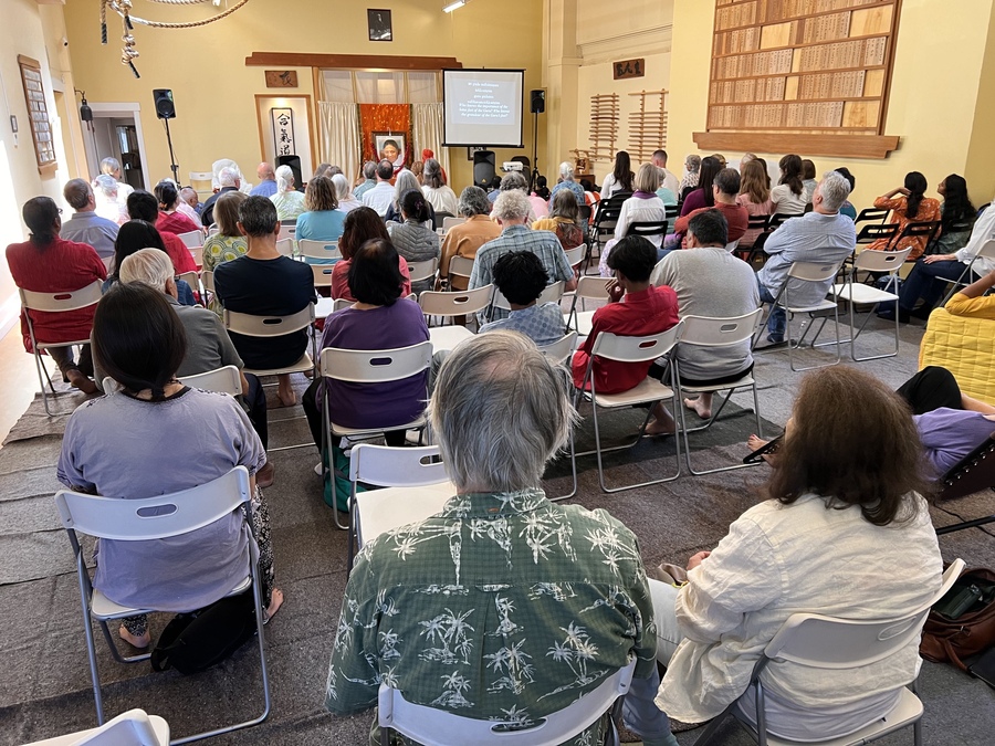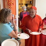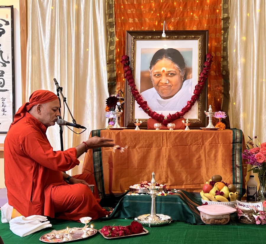 The Pacific Northwest satsangs welcomed Swami Dayamritananda Puri back to Seattle to celebrate Guru Purnima on July 1st. Swamiji conducted a Paduka Abhishekam, meditation, a spiritual talk, bhajans (devotional singing) and Arati. A delicious vegetarian meal was served after the satsang. Namaste Herb Farm also set up a charming display of their homemade goods; all proceeds are donated to the MA Center. Infinite gratitude to Swamiji and his traveling support team for providing a beautiful opportunity for the PNW satsang members to gather and celebrate Guru Purnima.